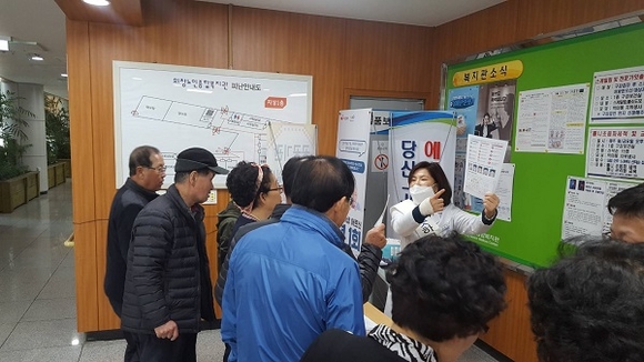 복지관은 이날 건강에 취약한 노인들에게 미세먼지 예방을 위한 건강수칙과 올바른 마스크 사용방법, 차량 2부제 참여유도 캠페인과 함께 보건마스크를 제공했다.