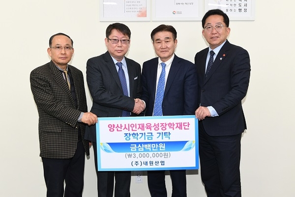 경남 양산시 북부동에 소재한 건설폐기물 수집 운반업체인 ㈜내원산업이 양산지역 인재육성을 위해 써달라며 양산시인재육성장학재단에 장학금 300만 원을 기탁했다.