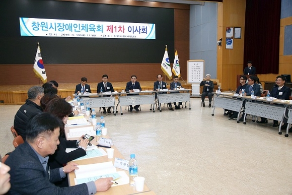 창원시장애인체육회는 19일 시청 시민홀에서 2019년 이사회를 개최했다.