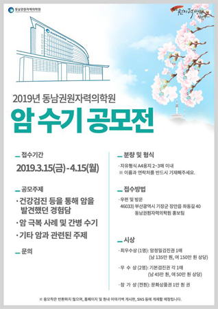 동남권원자력의학원이 암 조기 검진의 중요성을 강조하고 암에 대한 올바른 이해를 돕기 위해 '암 수기'를 오는 4월 15일까지 공모한다.
