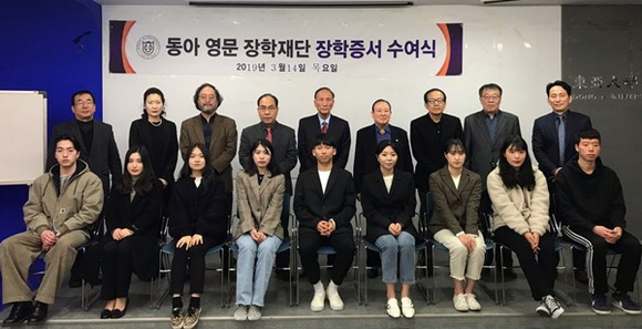 지난 1988년 설립된 동아영문장학재단은 1990년 2월 첫 장학생들을 선발했으며 매 학기 장학금을 지급, 현재까지 영어영문학과 재학생 400여 명에게 모두 1억 8,400여 만 원을 전달했다.