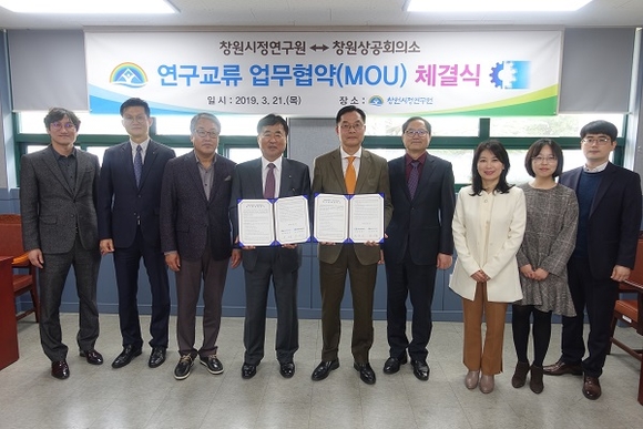 창원시정연구원과 창원상공회의소는 21일 창원시정연구원 회의실에서 도시발전 및 지역경제정책 등에 관한 연구정보의 상호교류를 위해 업무협약을 체결했다.