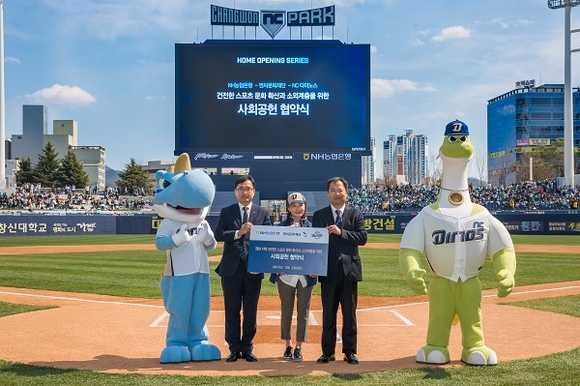 NH농협은행 경남영업본부는 지난 23일 NC 다이노스 홈구장에서 엔씨문화재단, NC 다이노스와 사회공헌 협약을 체결하고, 2019시즌 지역사회의 건전한 스포츠 문화 확산과 소외계층을 위한 다양한 문화 콘텐츠 제공을 약속했다.