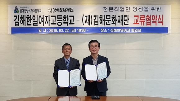 김해문화재단과 김해한일여자고등학교는 지난 22일 김해한일여고 회의실에서 전문 직업인 양성을 위한 교류협약을 체결했다.