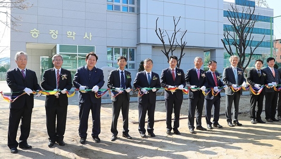 지난해 6월 착공해 올 2월 완공된 송정학사는 지상 4층 규모의 건물로써 숙소 24실에 1학년 37명, 2학년 32명, 3학년 23명 총 92명의 학생들이 입소해 생활하게 된다. 숙소 이외에도 도서실, 강의실, 체력단련실, 휴게실 등을 마련하여 학생들이 최적의 환경에서 공부를 할 수 있도록 건립됐다.