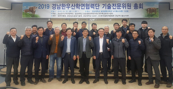 지난 22일 경상대 농업생명과학관 누리홀에서 열린 '2019 경남한우산학연협력단 기술전문위원 총회'에서 농협중앙회 김삼수 국장은 지난 1월 신설된 한우국의 역할과 기능을 소개하고, 산·학·관 한우 전문가들과 지속적인 소통과 협력을 위해 노력할 것을 약속했다.