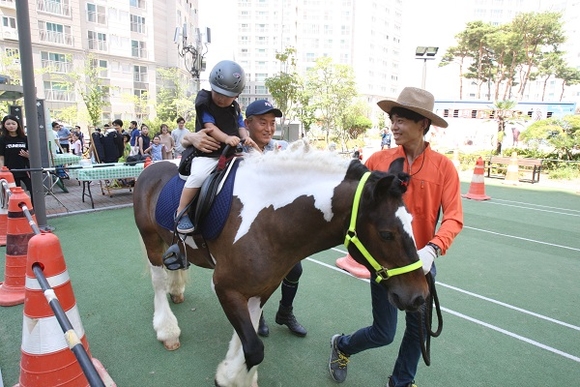 '아파트 馬당에서 놀자'는 부산·경남지역에 위치한 아파트 단지를 대상으로 입주민들의 신청을 받는다. 넉넉한 공간, 아파트 규모 등 다양한 조건을 고려·선정해 승마 위험을 최소화 시킨다.