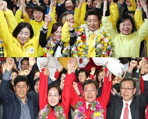 먼저 故노회찬 후보의 지역구였던 창원성산에서는 더불어민주당·정의당 단일후보인 여영국 후보가 최종 득표율 45.75%로 한국당 강기윤 후보(45.21%)를 간발의 차로 따돌리며 막판 역전승을 거뒀다.