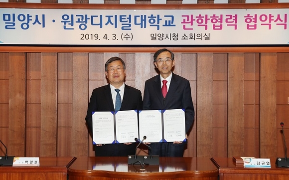 경남 밀양시는 원광디지털대학교와 3일 시청 소회의실에서 관학협력 협약을 체결했다.