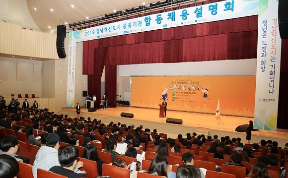 경남도는 10일 경상대학교 GNU컨벤션센터에서 경남지역 대학생 및 청년취업 준비생을 대상으로 '2019 경남 공공기관 합동채용설명회'를 성황리에 개최했다.