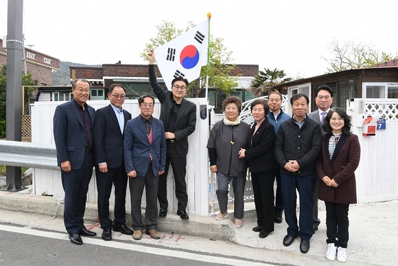 양산시는 대한민국 임시정부 수립 100주년이 되는 4월 11일에 맞춰 독립유공자 가구로 대통령표창 수여자인 황만우 선생의 후손댁을 첫 번째로 방문했다.