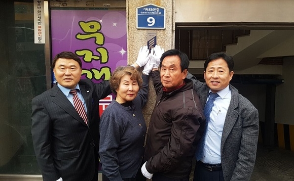 이날 명패 부착에는 김태문 시 시민복지국장과 삼일동지회 김해지회장인 이광희 시의원이 함께 했다.