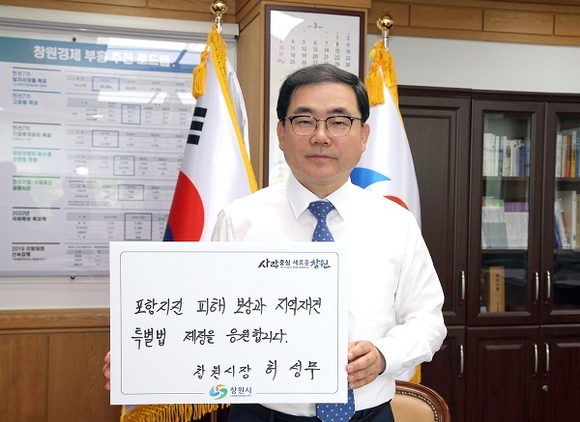 허성무 창원시장은 12일 지진으로 여전히 아픔을 겪는 포항시민에게 희망을 전해주고 안전한 대한민국을 만들기 위한 '포항지진 특별법 국민청원 챌린지' 캠페인에 동참했다.
