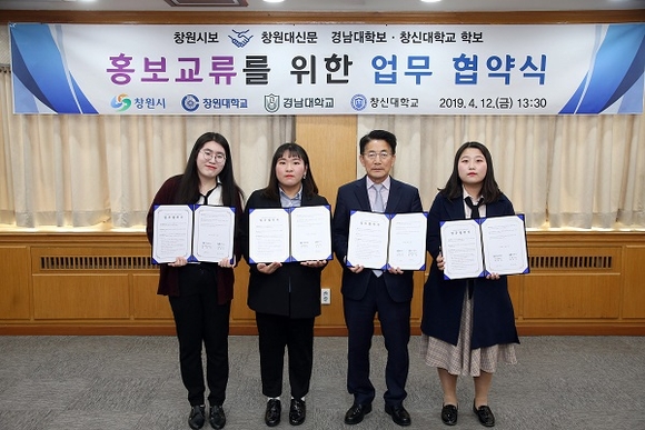 창원시 시정 소식지인 창원시보와 3개 대학교(경남대학교, 창신대학교, 창원대학교) 학보사는 지난 12일 홍보 교류를 위한 협약식을 가졌다.