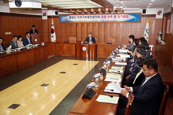 경남 밀양시는 지난 12일 시청 소회의실에서 각 분야 전문가, 시민사회단체 회원, 기업체 임직원 등 22명으로 구성된 밀양시 지속가능발전협의회 제1기 위원 위촉식 및 정기총회를 개최했다.
