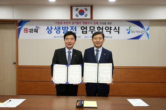 경남 김해시는 16일 시청 비상대책회의실에서 경남개발공사와 상생발전 업무협약을 체결했다.