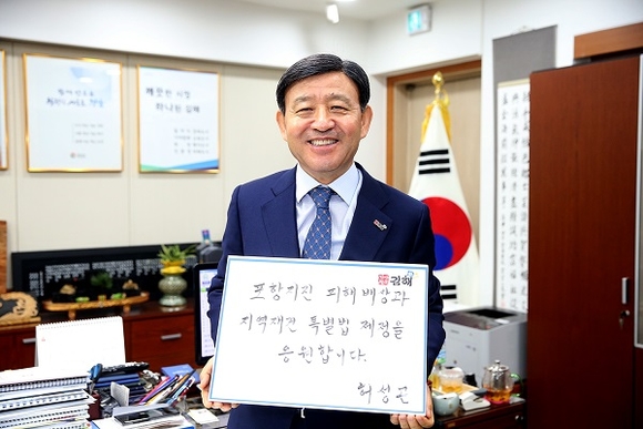 허성곤 김해시장(사진)이 포항지진 특별법 제정을 위한 국민청원 챌린지 릴레이 캠페인에 동참했다.