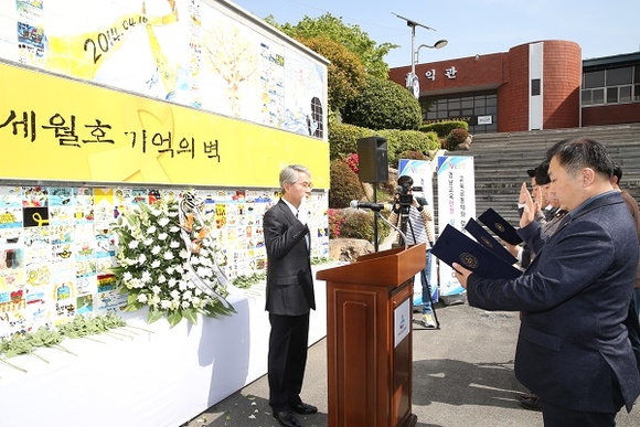 경남도교육청은 세월호 참사 5년을 맞아 16일 경남교육연수원 기억의 벽 앞에서 경남교육안전 다짐·실천 선언식을 가졌다.