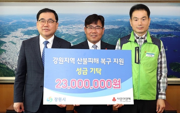 허성무 시장은 성금 기탁식에서 “직원들의 마음이 담긴 성금이 ‘희망’이란 이름으로 전달돼 삶의 터전을 다시 일굴 수 있도록 이재민들에게 힘이 될 수 있기를 바란다”며 “사회 각계각층에서도 많은 도움을 주셨으면 좋겠다”고 말했다.