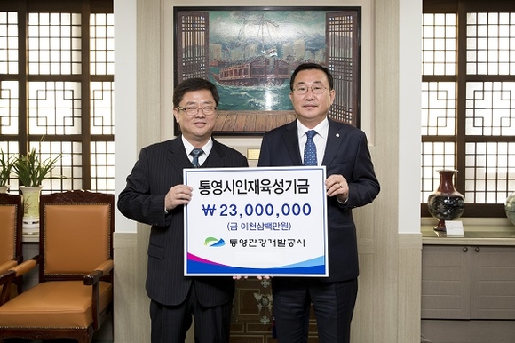 통영관광개발공사는 18일 지역 인재육성을 위해 인재육성기금 2300만 원을 통영시에 기탁했다.