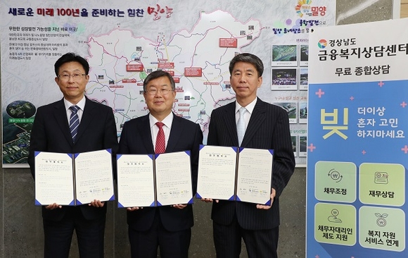 경남 밀양시는 22일 시청에서 경남신용보증재단, 밀양지역자활센터와 서민금융복지 지원을 위한 업무협약을 체결했다.