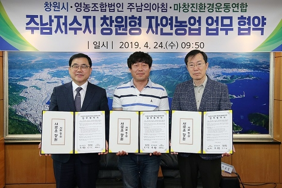이날 창원시와 협약에 참여한 기관은 그간 창원의 자연농업을 선도해온 영농조합법인 주남의아침과 자연생태계 보호와 환경보전을 위해 노력해온 마창진환경운동연합이다. 협약식에는 허성무 창원시장을 비롯해 영농조합법인 주남의아침 김이곤 대표, 마창진환경운동연합 정문찬 공동의장 등이 참석했다.