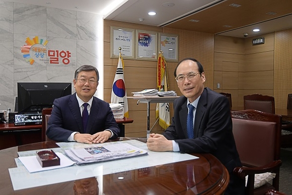 창원대학교는 최해범 총장이 밀양시청 시장실에서 박일호 시장과 대학과 시의 동반성장을 위한 관·학협력 간담회를 가졌다고 25일 밝혔다.