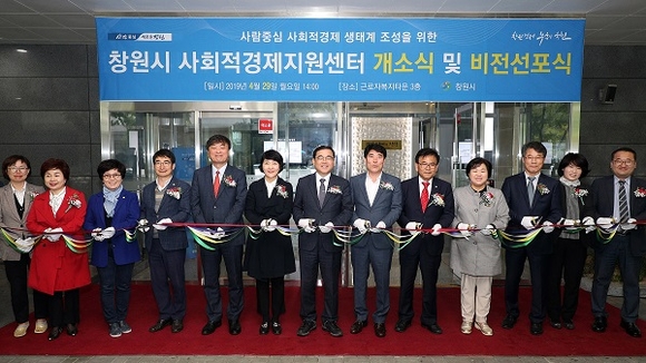 경남 창원시는 지난 29일 근로자복지타운에서 지역 사회적경제기업 관계자 100여명이 참석한 가운데 '창원시 사회적경제지원센터' 개소식 및 사회적경제활성화를 위한 비전선포식을 가졌다.