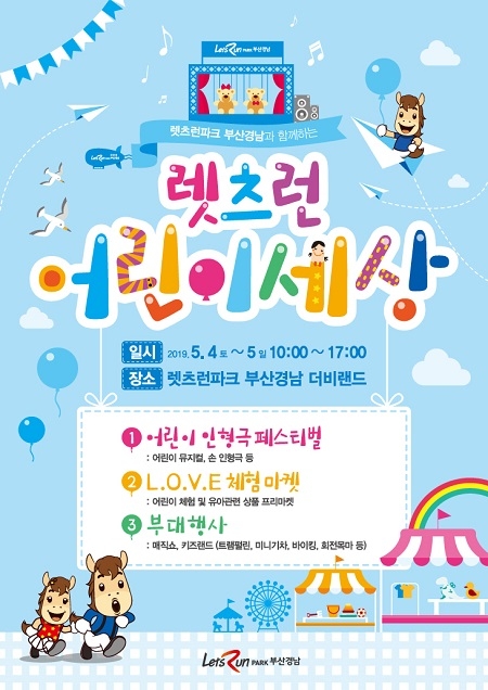 렛츠런파크 부산경남이 어린이날을 맞아 오는 4, 5일 양일간 '어린이 세상'을 주제로 인형극 페스티벌, LOVE마켓, 키즈랜드 등 풍성한 행사를 마련했다.