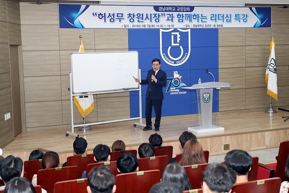 허성무 창원시장은 7일 오후 2시부터 경남대학교 '21세기형 새로운 리더십' 교양 강좌 수강생들을 대상으로 초청 특강을 가졌다.