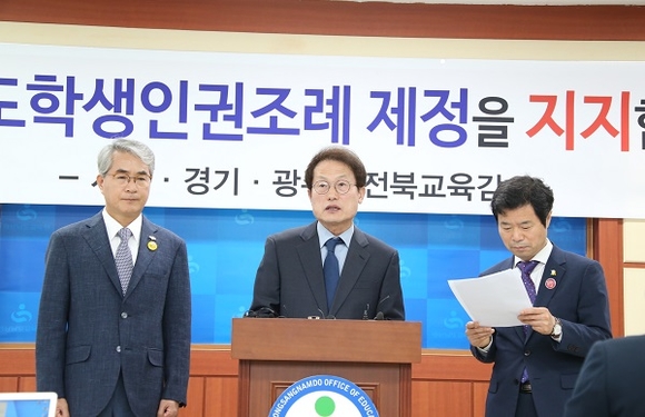 이어 “그 결과 학생인권조례를 시행 중인 서울·경기·광주·전북에서는 학생체벌과 폭력이 줄고, 학생자치활동과 동아리활동이 활발해졌으며, 배려와 존중의 민주적인 학교문화가 자리 잡고 있음을 확인했다”며 “성적문란, 교권추락, 학력저하를 초래할 것이라는 일부의 우려와 주장이 아무런 근거가 없고 사실과도 다르다”고 일축했다.