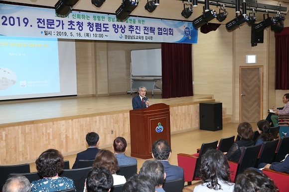 경남도교육청은 16일 제1청사 공감홀에서 `19년도 청렴도 향상을 위해 일선 초·중·고·특수학교의 교장과 교육지원청 관계자 등 380여 명이 참석한 가운데 청렴도 향상 추진을 위한 소통 협의회를 열었다.
