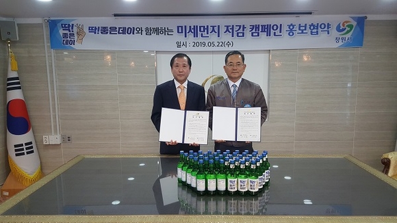 경남 창원시는 22일 지역기업인 ㈜무학과 미세먼지 저감 행동실천 요령 캠페인 홍보협약을 체결했다.
