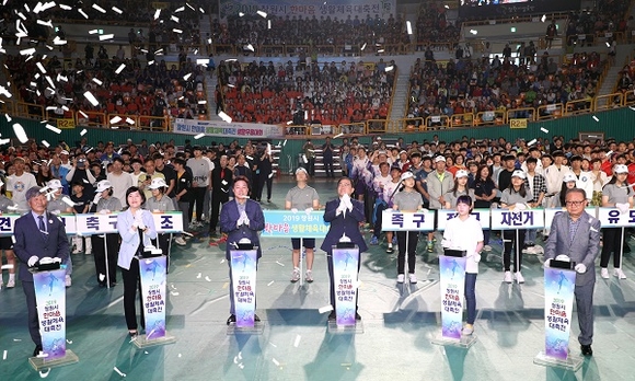 창원시민 최대의 생활체육대회인 '2019 창원시 한마음 생활체육대축전'이 1일 창원체육관에서 생활체육 동호인 3000여명이 참석한 가운데 열렸다.