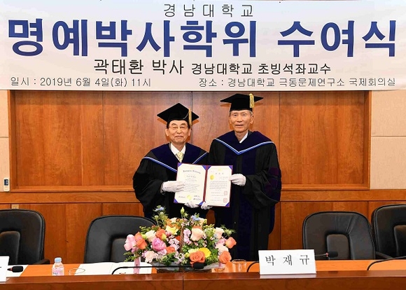 경남대학교는 4일 오전 11시 서울 극동문제연구소에서 곽태환 전 통일연구원장에게 명예 정치학박사 학위를 수여했다.