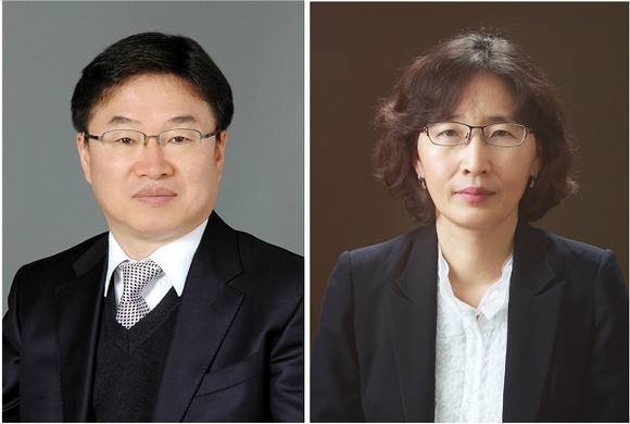 경상대학교는 공과대학 나노신소재공학부 권순기(사진 왼쪽) 교수와 자연과학대학 화학과 김윤희(사진 오른쪽) 교수팀이 서울대학교 김장주 교수팀과 공동으로 이리듐(Ir) 착화합물을 기반으로 CIE y좌표 0.2 미만의 가장 높은 외부 양자 효율을 나타내는 청색 OLED를 개발했다고 11일 밝혔다.