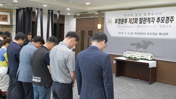 한국마사회 렛츠런파크 부산경남은 지난 9일 부경 관람대 4층 VIP실에서 '제2회 말관계자 추모식' 행사를 가졌다.