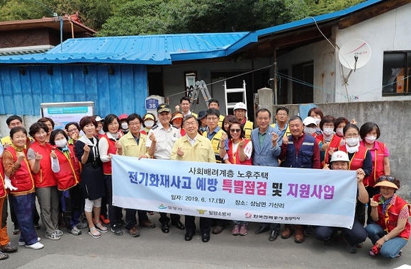 경남 밀양시는 밀양소방서, 한국전력공사 밀양지사와 17일 상남면 사회배려계층 가구에 대해 전기화재 예방을 위한 합동점검과 지원사업을 펼쳤다.