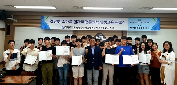 창원대학교 산학협력단은 지난 21일 교내 산학협동관에서 '경남형 스마트 일자리 전문인력 양성 교육' 수료식을 개최했다.