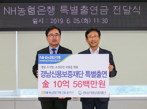 NH농협은행 경남영업본부는 지역경제 활성화와 소기업·소상공인 경영안정 지원을 위해 지난 25일 경남신용보증재에 특별출연금을 전달했다.