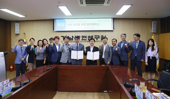 경남발전연구원 남명실에서 열린 협약식에는 이남두 경남개발공사 사장, 홍재우 경남발전연구원장 및 관계자 총 10여 명이 참석했다.