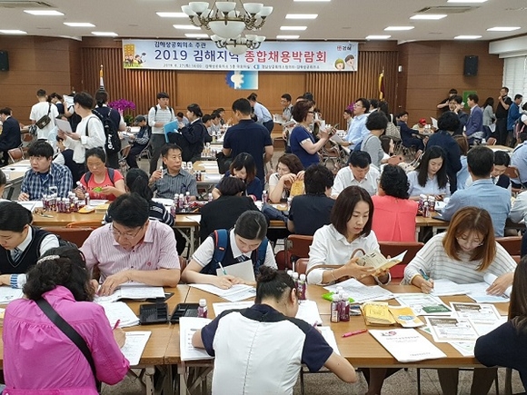 김해상공회의소는 27일 김해상의 5층 대회의실에서 지역기업들의 인력난을 해소하고 구직자들에게 양질의 일자리를 제공하기 위한 '2019 김해지역 종합채용박람회'를 성황리에 개최했다.