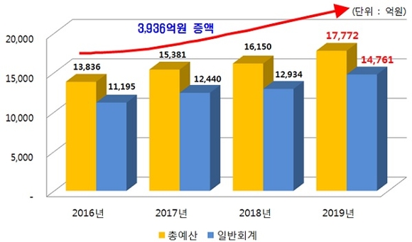 일반회계는 924억원 증가한 1조 4,761억원, 특별회계는 3억원 증가한 3011억원이다.