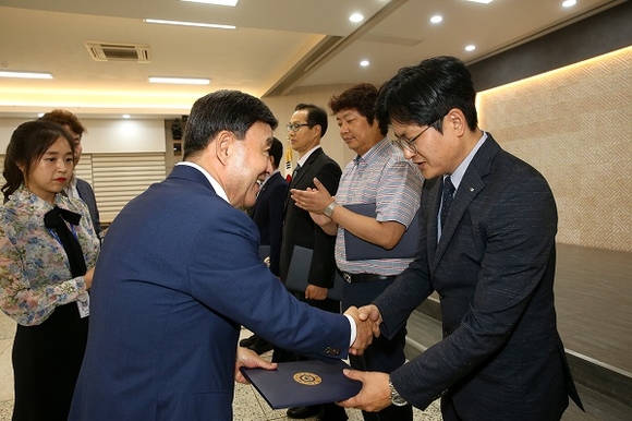 시상식은 1일 시의 정례조회에서 진행됐다. 시는 현장 중심 규제개선 아이디어 발굴을 위해 지난 2~3월 시민을 대상으로 '일자리 늘리GO! 기업 살리GO! 체감도 올리GO!' 공모전을 개최해 총 80건을 접수했다.