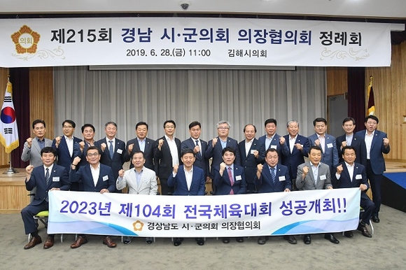 경남시·군의회 간 교류 및 협력을 증진하고 지방의회와 경남 발전방안을 모색하기 위한 제215회 경남시·군의회 의장협의회 정례회(회장 이찬호·창원시의회 의장)가 지난 28일 중소기업비즈니스센터에서 개최됐다.