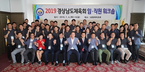 경남도체육회는 4, 5일 양일간 사천 남일대리조트 등에서 임직원의 역량을 강화하고 구성원 간 소통과 화합을 다지기 위한 임직원 워크숍을 개최했다.