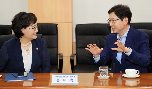 이날 간담회에는 두 사람 외에도 강소특구로 지정된 허성무 창원시장, 조규일 진주시장, 허성곤 김해시장과 기술핵심기관인 최규하 한국전기연구원장, 정종일 경상대연구부총장, 최용선 인제대 총장 직무대행이 참석했다.