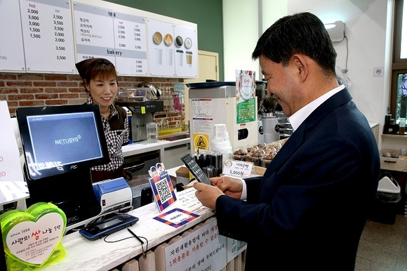 허 시장은 시청 내 한 카페를 방문해 제로페이 결제 후 다음 주자로 김형수 김해시의회 의장, 양대복 김해시소상공인연합회장, 박성연 일자리경제국장을 지명했다.