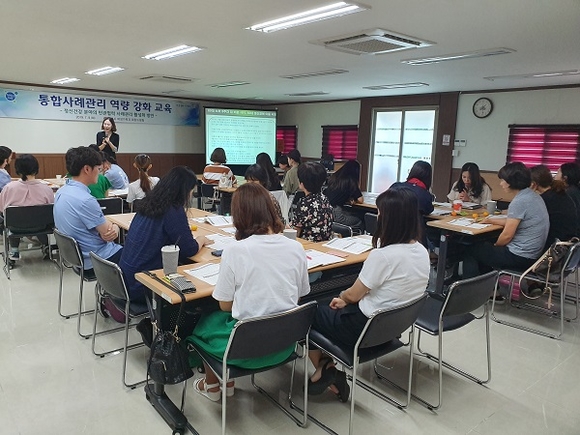 경남 양산시는 9일 읍면동 맞춤형복지팀 담당자, 희망복지지원단 통합사례관리사 등 30여명이 참석한 가운데 동아대 문영주 교수를 초청해 양산시자원봉사센터에서 '정신건강 분야의 민관협력 사례관리 활성화 방안'이라는 주제로 통합사례관리 역량 강화 교육을 가졌다.