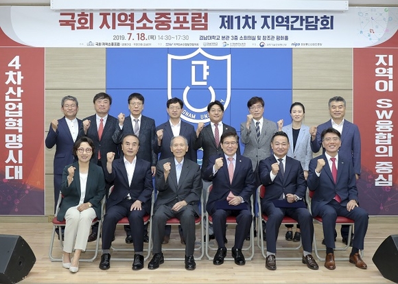 국회 지역소중포럼이 주최하고 경남대학교와 (사)지역SW산업발전협의회, 경남테크노파크가 공동으로 주관하는 '국회 지역소중포럼 제1차 지역 간담회'가 18일 경남대 본관 및 창조관에서 열렸다.